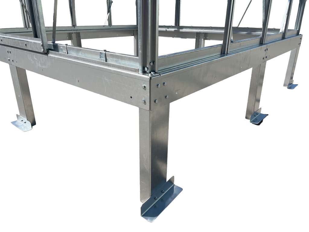 Podkladový rám ze žárově pozinkovaného plechu určený pro montáž přímo do země bez podezdívky.